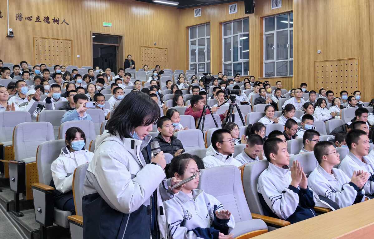 讲座期间,从提出问题、探索问题到解决问题,窦新存生动地展示了科学探究到科学实践的清晰路径,启发了同学们的科学思维。同时,他回顾了自己求学、工作的成长历程,并现场演示了学习可用的肌肉训练法,同学们踊跃举手上台展示,场内气氛热烈。